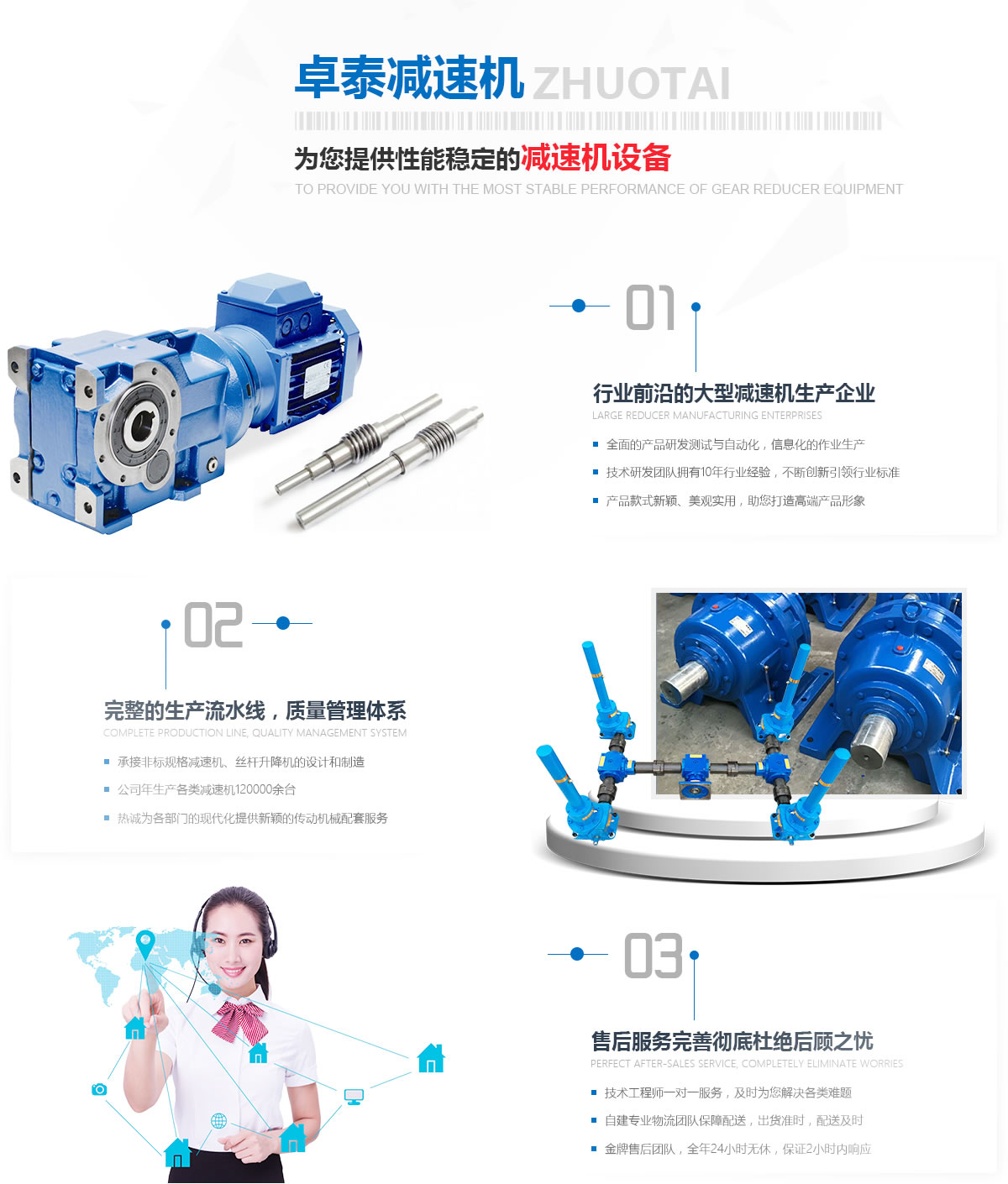寰峰窞鍗撴嘲鍑忛熸満鏈夐檺鍏徃鏄崕鍖楀湴鍖虹殑鐢熶駭鍑忛熸満鐨勪笓涓氬叕鍙革紝浼佷笟鍗犲湴闈㈢Н涓や竾浣欏鉤鏂圭背錛屽凡鏈夎繎浜屽崄騫寸敓浜у埗閫犵粡楠屻備富瑕佺敓浜х粡钀ワ細(xì)WH銆丠W銆丆W銆丼CW銆乄S銆乄D銆乄XJ銆乄SJ緋誨垪鍦嗗姬榻匡紙鏅氾級(jí)鍦嗘煴铚楄疆铚楁潌鍑忛熸満錛汿PS銆乀PU銆乀PA緋誨垪騫抽潰浜屾鍖呯粶铚楄疆鍑忛熸満錛沊銆丅緋誨垪鎽嗙嚎閽堣疆鍑忛熸満錛汼WL緋誨垪铚楁潌涓濇潬鍗囬檷鏈猴紱澶у瀷鍠風(fēng)亴璁懼涓撶敤鍑忛熸満錛涚數(shù)鐐変笓鐢ㄥ噺閫熸満絳夈傝繕鍙壙鎺ュ悇縐嶉潪鏍囧噺閫熸満鍙?qiáng)閰嶄欢鐨勮璁″姞宸ャ傚崜娉版満姊板緇堝潥鎸佲滆川閲忕涓錛屽鎴蜂負(fù)鏈濈殑鎬濇兂銆備粠涓嶆澗鎳堝湪浜у搧璐ㄩ噺涓婄殑瑕佹眰錛屽浜庢瘡涓浠朵駭鍝侀兘緇忚繃璁ょ湡鐨勮川閲忔妸鍏籌紝紜繚瀹㈡埛鐨勬弧鎰忎綑璁ゅ彲銆備笉鏂姞澶у璐ㄩ噺鐨勬姇鍏ワ紝鏄痙宸炲崜娉板噺閫熸満鏈夐檺鍏徃鑾峰緱楂樿川閲忎駭鍝佺殑閲嶈淇濊瘉銆? 寰峰窞鍗撴嘲鍑忛熸満鏈夐檺鍏徃浠ョ敤蹇?jī)缁忚惀銆佸畬緹庢妧鏈拰鏁笟綺劇錛岃嚧鍔涗簬涓烘?zhèn)ㄦ彁渚涚湡璇氭湇鍔″拰鏇村悎鐞嗙殑鏁村瑙e喯x柟妗?....
